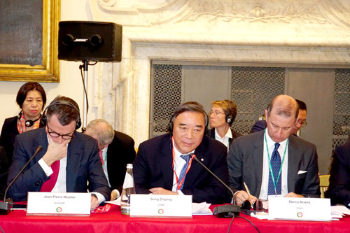 為落實習近平主席在接見中意企業(yè)家代表時的講話精神,宋志平在會上提出倡議:一是繼續(xù)加強中意企業(yè)間的溝通與交流,真正發(fā)揮中意企業(yè)家委員會的平臺效用;二是中意企業(yè)加強全球合作,發(fā)揮各自優(yōu)勢,聯(lián)合開發(fā)第三方市場,為世界經濟的發(fā)展做出積極貢獻。他強調,中國正在全面推進改革開放,經濟發(fā)展模式從高速增長進入高質量發(fā)展階段,市場活力得到充分激發(fā),中國建材將進一步強化與意方企業(yè)在新技術、新經濟方面的合作,誠邀意方企業(yè)來華共同發(fā)展。宋志平的發(fā)言得到了中意雙方與會代表的熱烈響應。