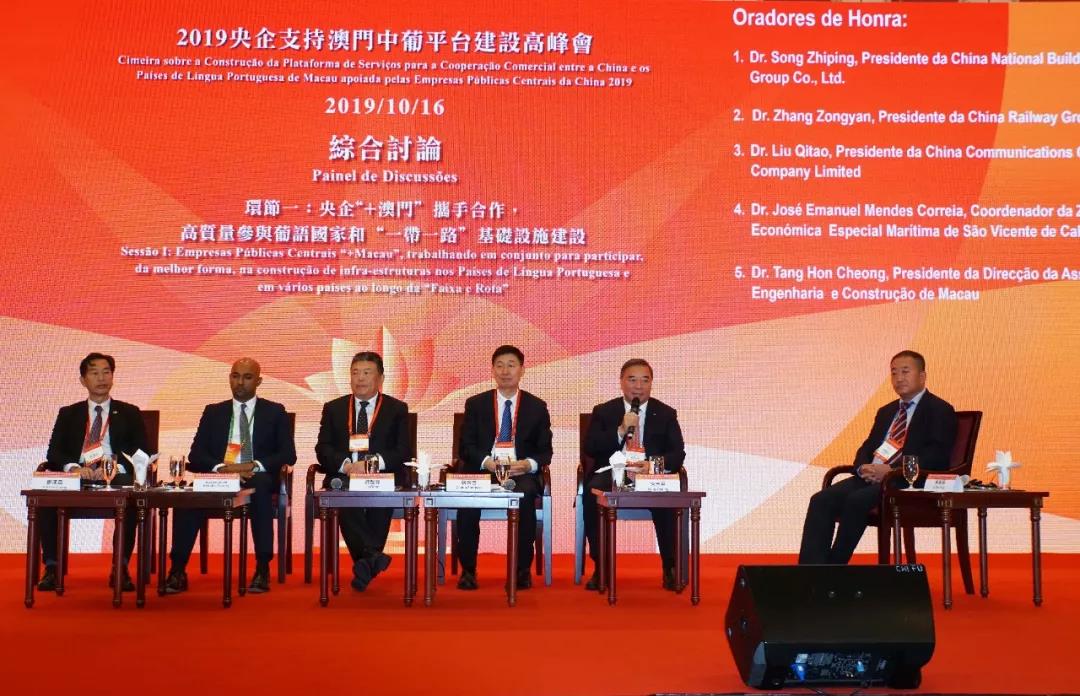 宋志平在“央企‘ +澳門’攜手合作、高質(zhì)量參與葡語國家和‘一帶一路’基礎(chǔ)設(shè)施建設(shè)”的綜合論壇上分享了集團(tuán)參與葡語國家和“一帶一路”建設(shè),在基礎(chǔ)設(shè)施、國際產(chǎn)能合作等領(lǐng)域的成果和經(jīng)驗,其觀點受到與會嘉賓的贊賞和一致認(rèn)可。論壇由中國電力建設(shè)集團(tuán)副總經(jīng)理李燕明主持,中國鐵路工程集團(tuán)董事長張宗言,中國交通建設(shè)集團(tuán)董事長劉起濤,佛得角圣維森特島海洋經(jīng)濟(jì)特區(qū)主任Jose Emanuel,澳門建造商會理事長鄧漢昌一同參加。