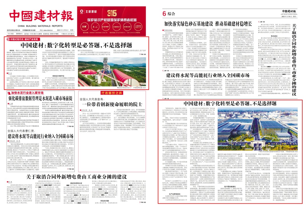 2023年全國兩會(huì)政府工作報(bào)告把“加快建設(shè)現(xiàn)代化產(chǎn)業(yè)體系”列為重點(diǎn)工作之一,明確提出要大力發(fā)展數(shù)字經(jīng)濟(jì),加快企業(yè)數(shù)字化轉(zhuǎn)型,著力提升高端化、智能化、綠色化水平。《中國建材報(bào)》特設(shè)“中國式現(xiàn)代化·建材產(chǎn)業(yè)實(shí)踐”專欄,刊發(fā)了中國建材集團(tuán)黨委書記、董事長周育先的專訪文章。小料將全文分享給大家。